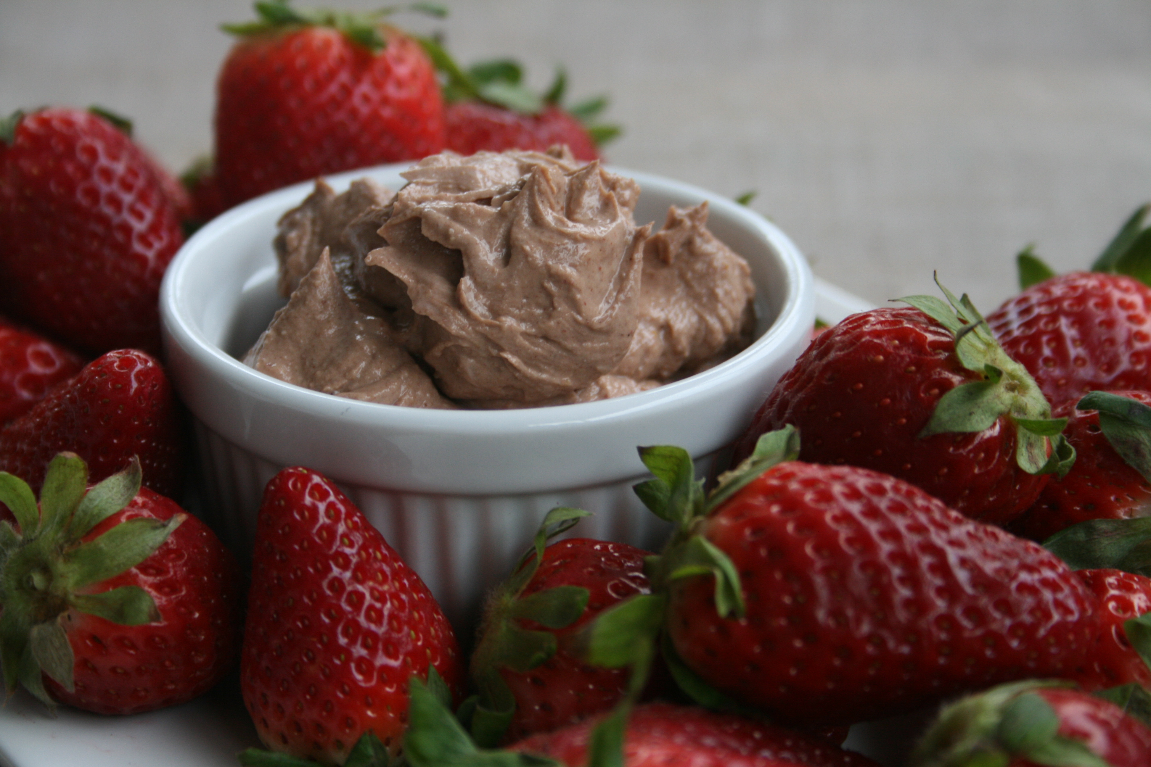 Chocolate Peanut Butter Cheesecake Dip with Strawberries