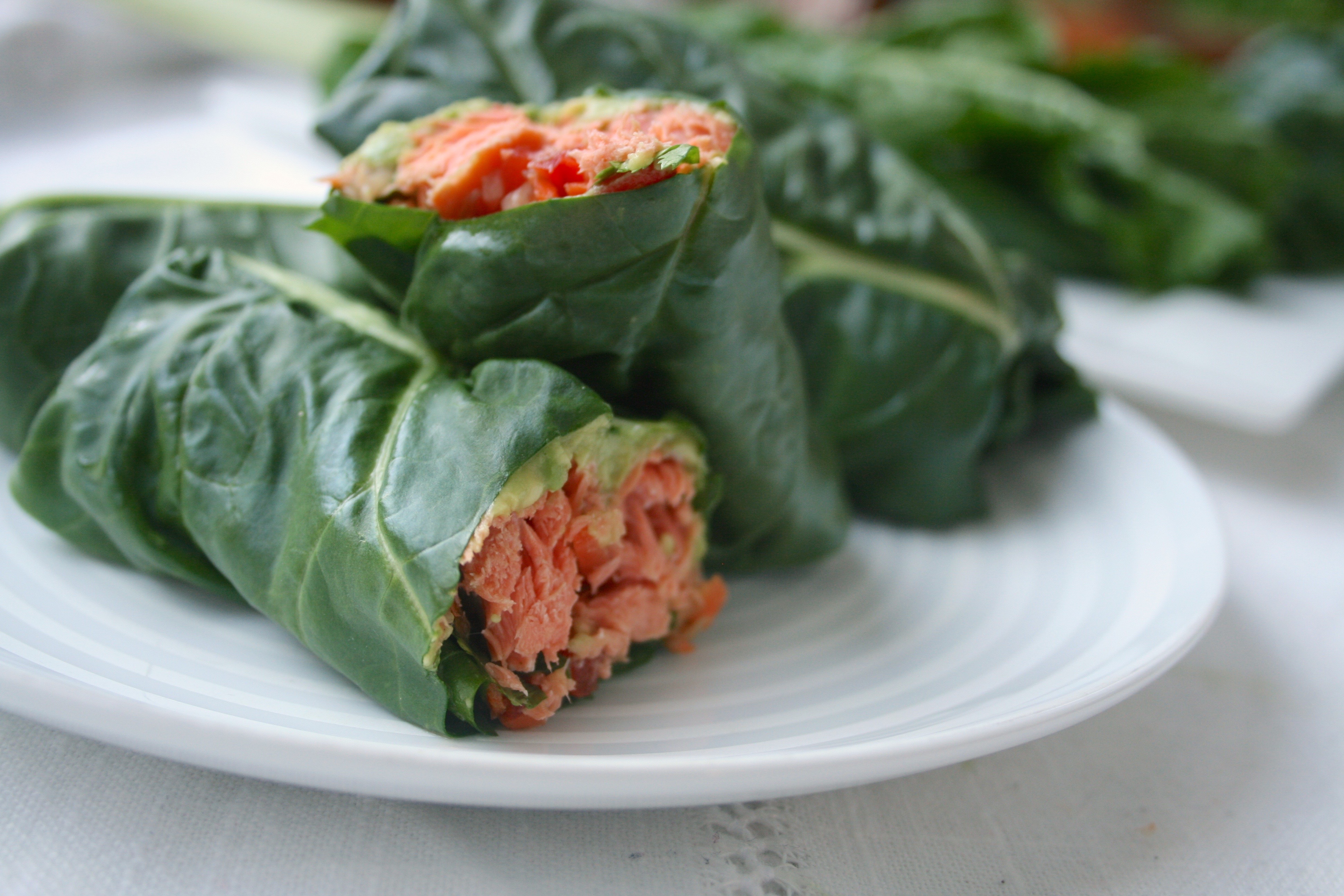Swiss Chard Salmon Wraps with Kimchi Slaw