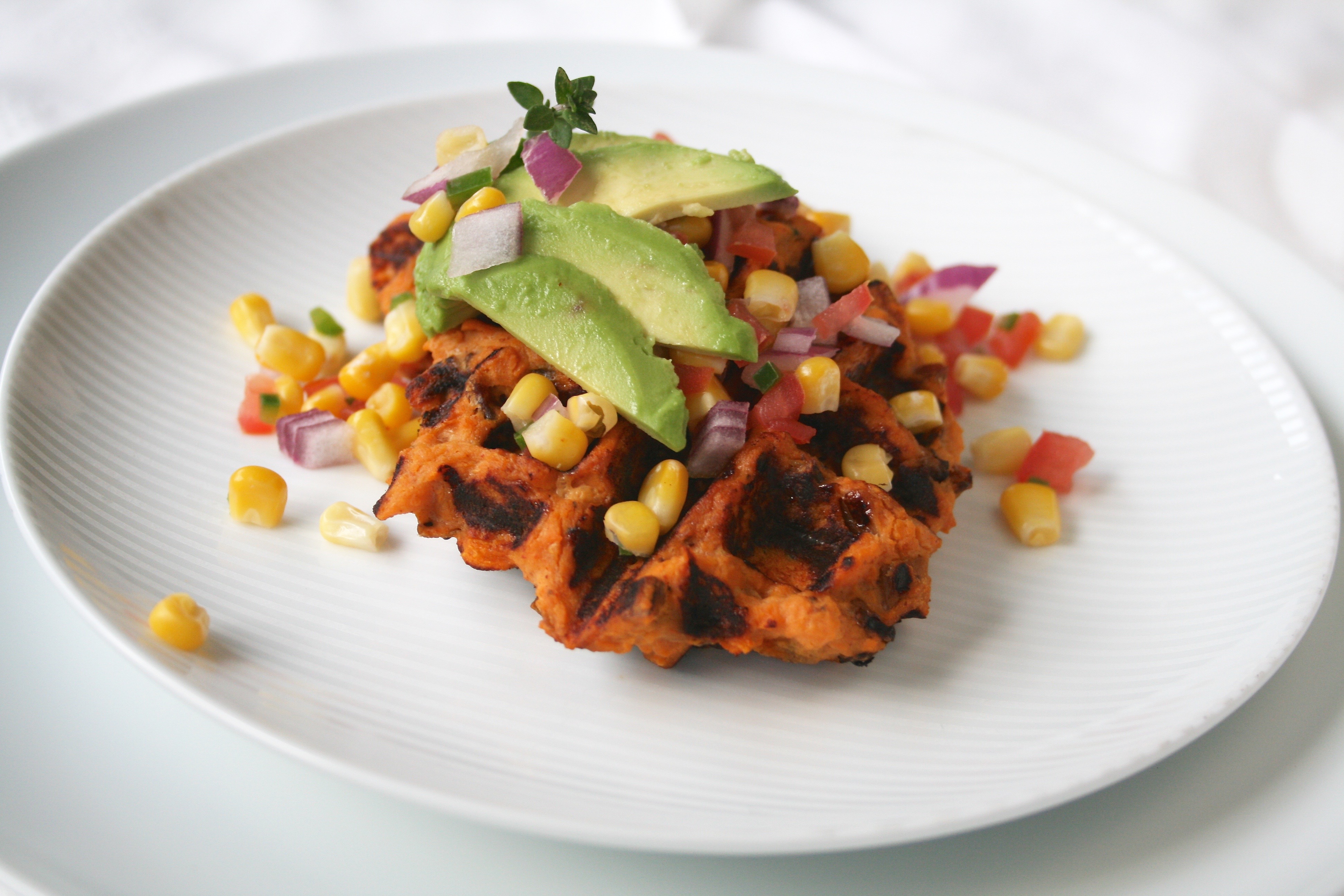 As the days start to lengthen and temperatures rise it is a great time to start taking advantage of the greenery sprouting and lining market stalls. Spring is naturally a time of renewal and the ideal point in the year for us to put a little extra focus on detoxification. One of the best ways to aid this natural and ongoing body process is by consuming fresh, nutrient dense foods- and seasonal green vegetables certainly fit into this category. Asparagus, green beans and peas are all markers of spring and have a nice combination of natural sweetness and astringency. Sautéing them with some garlic and ginger then finishing off with a squeeze of fresh citrus juice is a fast and easy way to add in some flavour while allowing them to still shine. Continue Reading →Bacon Yam Waffles with Corn Salsa