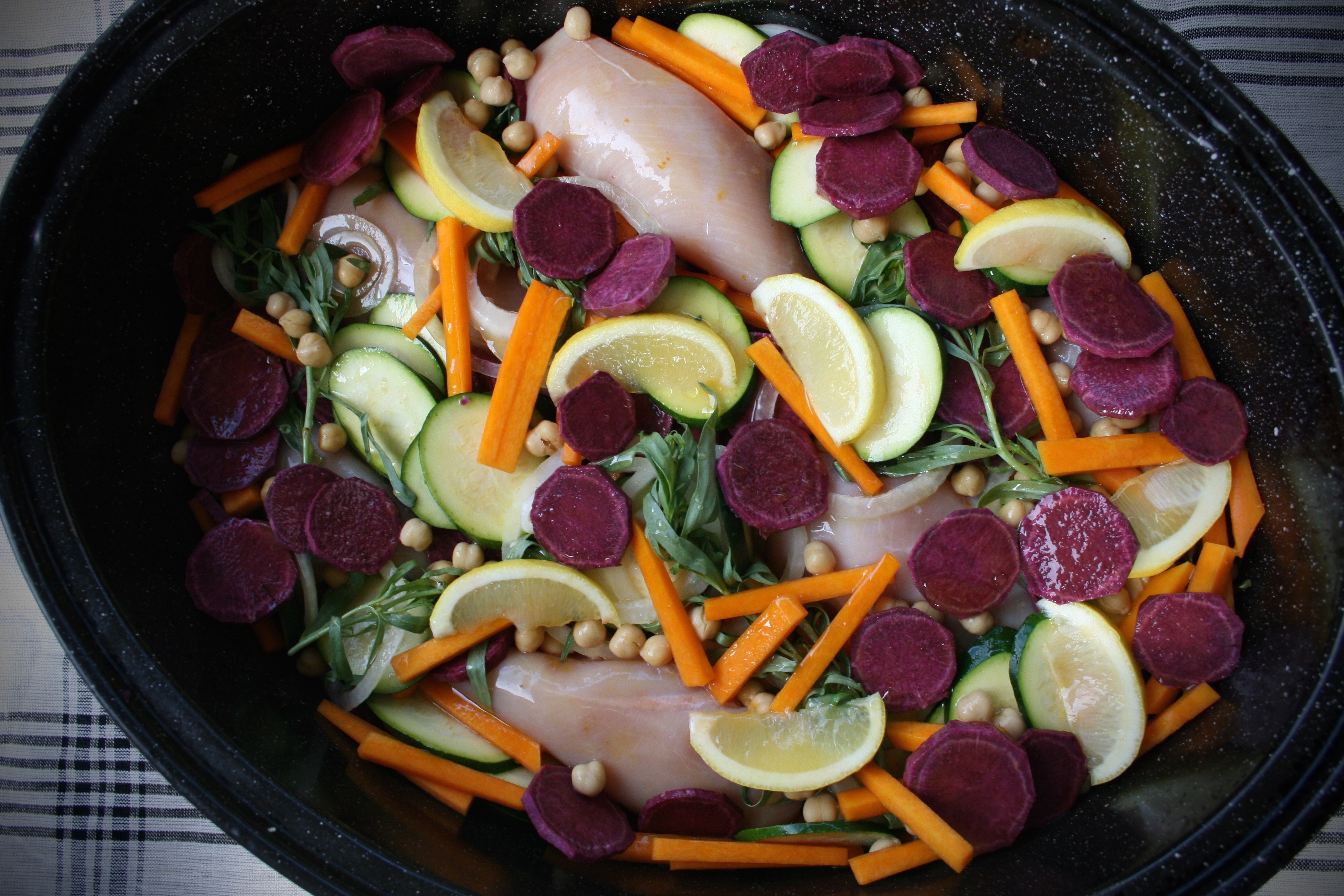 As much as I love cooking there are days when it is the last thing I feel like doing. In such scenarios there is one trick that revives my affection for toiling over the oven- getting weird and unusual ingredients. The moment I found these purple yams my creative juices started flowing and I was looking forward to preparing something new. Both yams and butternut are quite sweet and starchy, making them sweet and satisfying. Combined with fiber-rich chickpeas and light zucchini, they all make the chicken into an easy one-pot dish. Some fresh herbs and lemon add in lots of flavour and a bit of broth keeps the chicken moist. Continue Reading →