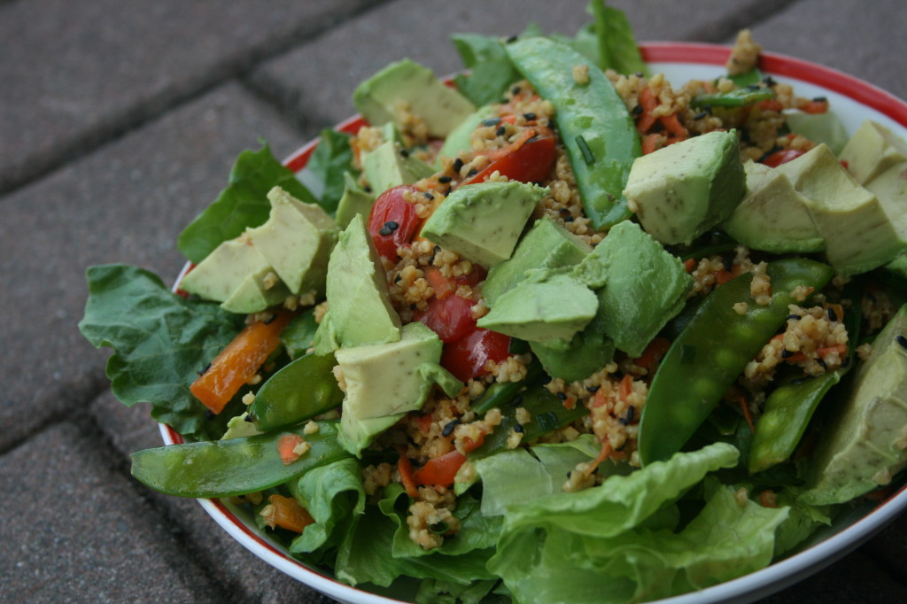 Millet is the great exception we have found so far that is generally very healing in the body, and also places much less stress on the digestive system. While it would give me great joy if everyone were to start soaking and sprouting millet on their counters, I understand that that is not realistic, nor is it something I often make time for myself. However, soaking it overnight, or in the morning in a big bowl of water until preparation time can make a difference that pays off in the long run. I like to do this, especially in the winter when we need more hearty and grounding food. In the East, millet is a traditional food during the rainy seasons. It is warm, nourishing and very comforting. I soak a couple cups of millet and then cook it the next day and place it in a big container in the refrigerator. From there it is good for 5-7 days and I can make fresh salads like this one in the time that it would take me to defrost some white bread from the freezer and make a sandwich. Since it is available, I have found that my brothers, who would never otherwise think to make such a thing will dip into it and add it to a creamy tuna salad or something more standard American dietish to make it more filling.