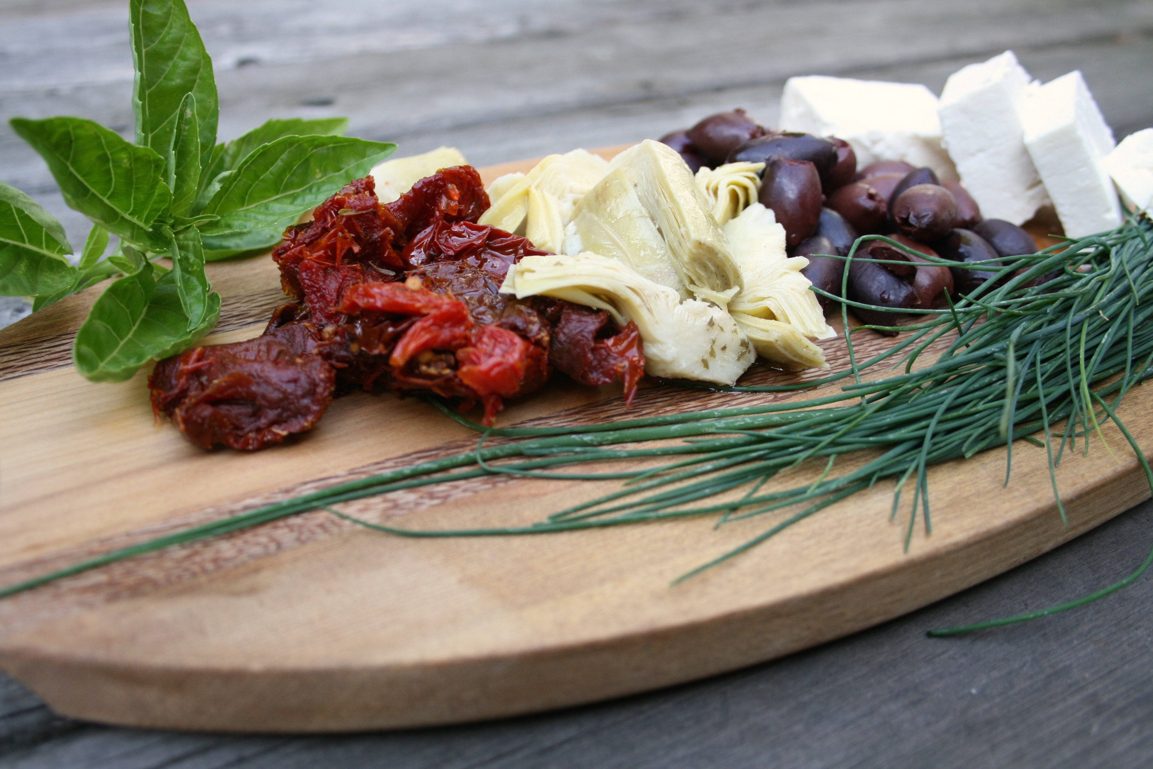 One of my tricks when I use rice as the base of a stuffing is to first sautée an onion then add in the rice to that pot with vegetable broth instead of water. By the time it finishes cooking it is already seasoned. Then I add in a can of legumes, chickpeas in this case, to complete the amino acid spectrum. Amino acids are the building blocks of protein. Animal foods are considered “complete proteins” because they contain all the amino acids humans need but plants do not so they are called “incomplete proteins”. Matching up plant foods with different amino acid ensures that they are all obtainable- grains and legumes are one such pairing. Then I finish it off with some flavourful vegetables like sun dried tomatoes, artichoke hearts, olives and chives, and maybe some sharp cheese like feta along with a simple vinaigrette or just straight balsamic vinegar.