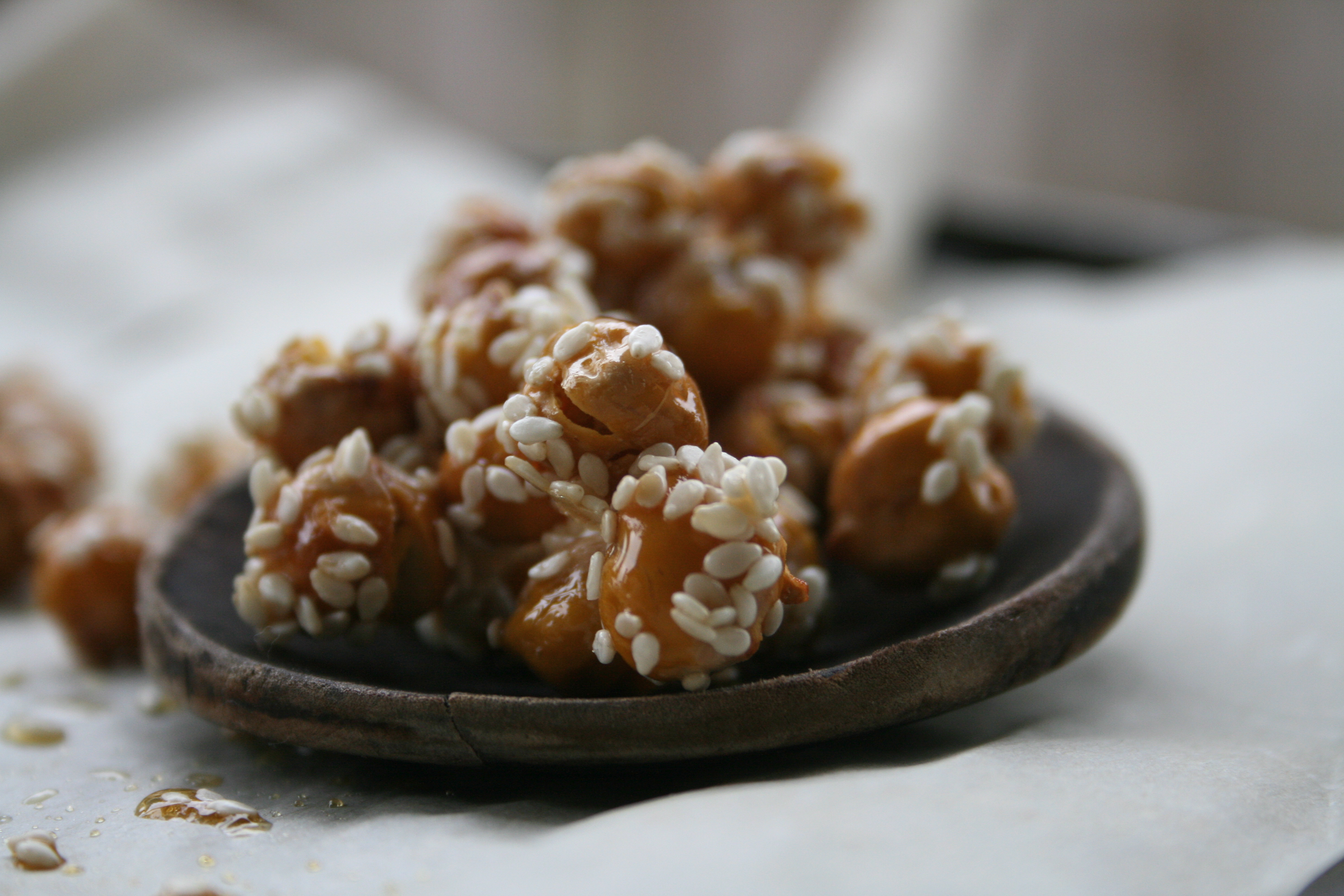 Roasted chickpeas are usually paired with salt and savory spices to create a healthy snack full of fiber and protein, but they work well with some sweetness too. Honey, legumes (the lentil and bean family, including chickpeas a.k.a garbanzo beans) and sesame seeds are foods widely used in Ayurveda, a five thousand year old wellness system derived in India meaning “the science of life”. Continue Reading →