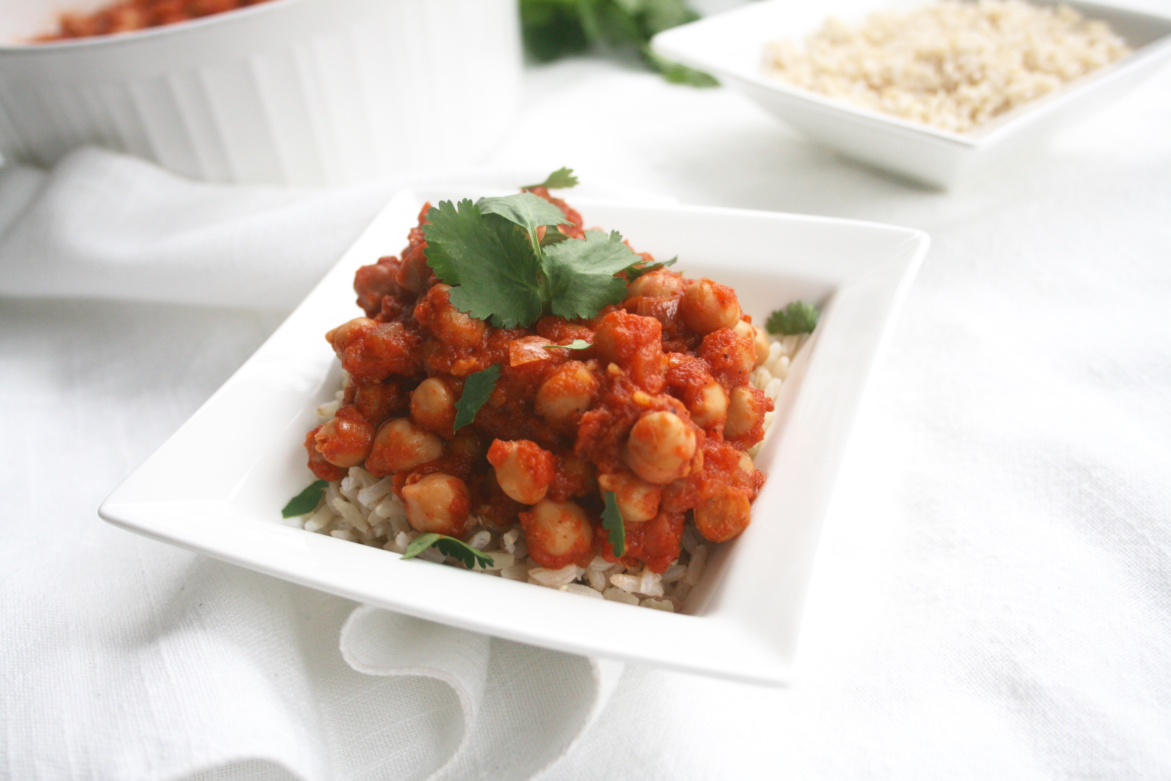 Chana MasalaChana Masala is an Indian dish featuring chickpeas in a spiced tomato sauce, with chana meaning chickpeas and masala meaning a spice blend. It is warm, fragrant, comforting, stick-to-your-ribs kind of food. On cold, dark February nights with the rain pounding outside there are few things I find more comforting than gathering around a candlelit table with friends and eating hearty, spiced, exotic food like this. ChickpeasChickpeas, also known as garbanzo beans are a legume rich in fiber, protein, folate and several minerals. Just one cup contains half the fiber needed for the day, nearly one third of the protein and over two thirds of the folate, earning itself the right to be called nutrient dense. It’s biggest contribution however, is molybdenum, with an impressive amount of almost three times what we need for a day in just one cup. Molybdenum is not the most talked about mineral, and is certainly not a media darling like calcium, iron and zinc are but it plays vital helper roles in our bodies, working with other components to optimize detoxification.ChickpeaChana MasalaThis is a simplified version of Chana Masala with ingredients widely available in the Western world. Traditionally this dish uses a powder made from green mangoes that imparts some tangy acidity but it is pretty hard to find in North America. An alternative is to use a bit of fresh lemon juice to taste once the dish is done cooking, or it can be completely omitted- it may not have the exact same flavour as in restaurants but it is not lacking in the flavour department. The spices used range from family to family and town to town but generally the spice blend called garam masala is the component the dish is most dependant upon. Again, even the spice blend itself varies with cooks and regions but it should contain some blend of cumin, coriander, cardamom, black pepper, cinnamon, nutmeg and cloves- give or take a spice or two. These are all warming, aromatic spices that add a lot of depth to the dish. If you already have them all in your cupboard it is easy to whip up your own blend (I added the easy recipe I use with already ground spices below), otherwise pre-made versions are available widely in grocery stores and markets. The spices are an integral component of Indian cuisine, and even when it is not perfectly authentic, the fresher and better quality the spices, the better the dish itself will be.Chana Masala