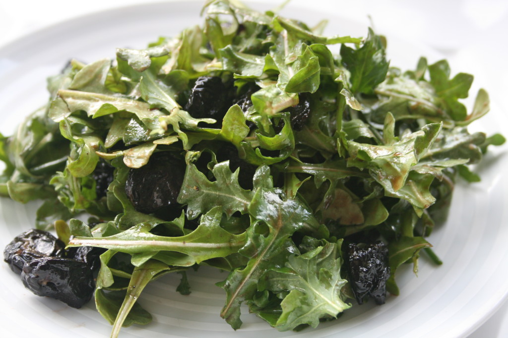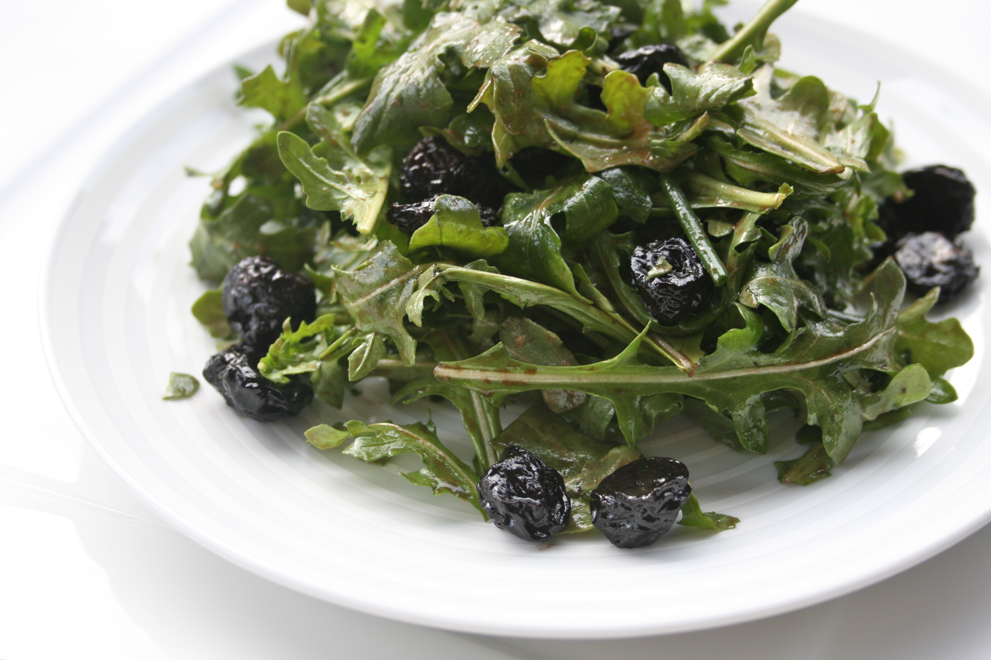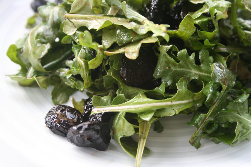 Many of these holistic views on health and nutrition instill the importance of eating a variety of foods and flavors and eating what is available locally and seasonally. Spring is a transitionary time between the darker days and heavier foods of winter and the lighter food of livelier and longer summer days. Traditionally it is one of the best times to focus on cleansing and balancing out what and how we eat. Adding in lighter salads and more raw produce can help build up our vitamin, mineral, antioxidant and enzyme levels, supporting our bodies as we become more active as the days get longer. For this salad I used a light balsamic vinaigrette, chives and dried cherries to add in the full spectrum of flavors in addition to bitter- pungent/spicy, astringent sweet, sour and salty. All of the flavors (5 in TCM and all 6 in Ayurveda) are believed to have different effects in the body and are important to incorporate regularly to promote a healthy balance. We now know through modern science that different flavors are connected to different nutritional profiles and that incorporating all of them, like incorporating all colors is a good way to ensure getting a wide range of nutrients. The dried cherries can be replaced with dried cranberries or fresh pomegranate, if going with dried fruit try to get some that doesn’t have any added sugars, cheap oils or sulfur dioxide. If you go to farmers’ markets keep your eyes open for dried fruits, that’s where I got these cherries and they are the best quality and best tasting ones I have found.