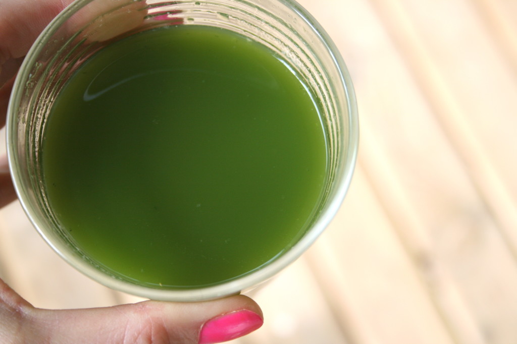 - Cut each ingredient into pieces the right size for your juicer and pass them through one by one. It can be easier to juice this many greens if you break them up with the other juicier ingredients- I usually put a piece or two of kale in, followed by a piece of lettuce then some pineapple, then some cilantro and finally some apple and cucumber to help it all wash through, or an order similar to that and repeat until finished.