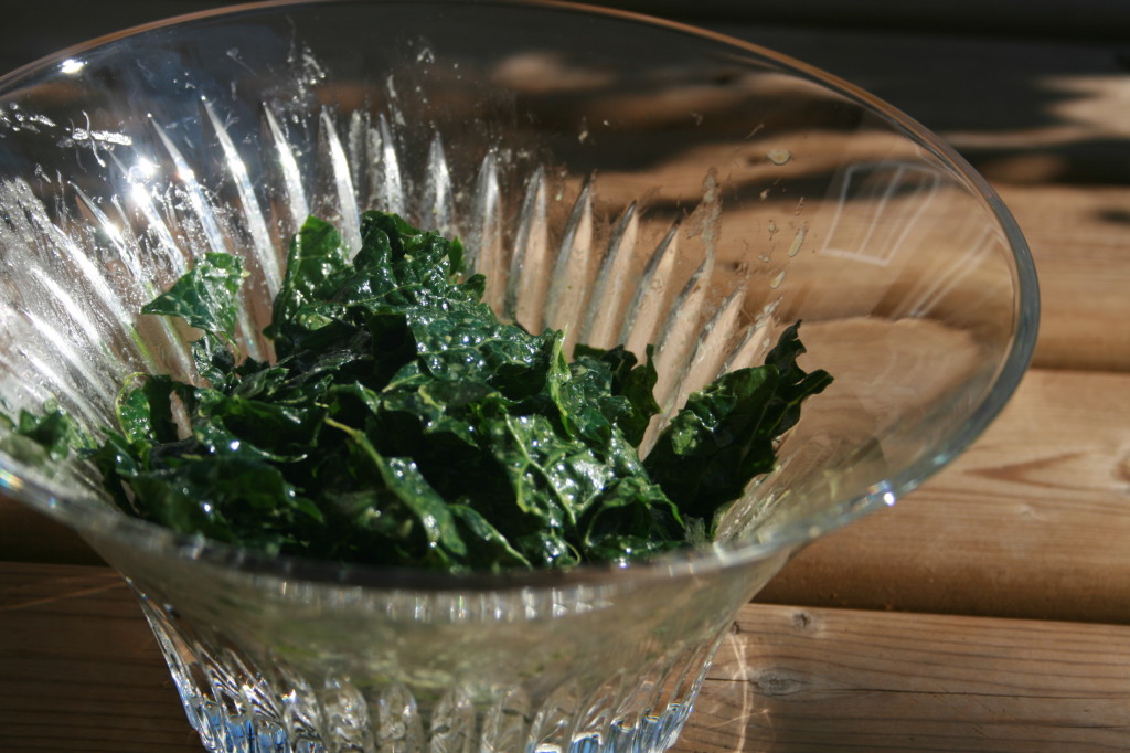 - 8 cups of dinosaur kale (about 1 very large bunch) rinsed, destemmed and torn to bite size pieces