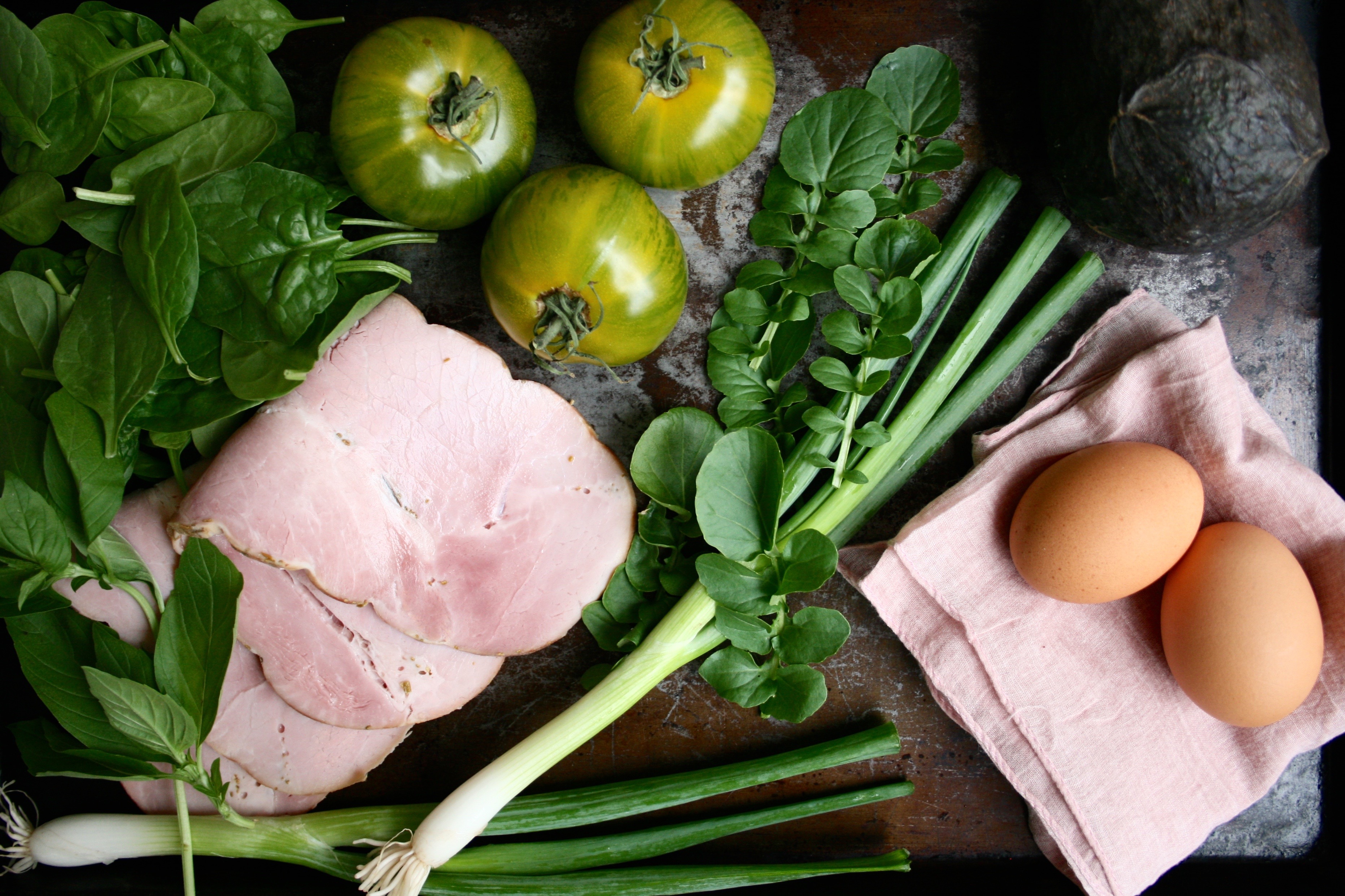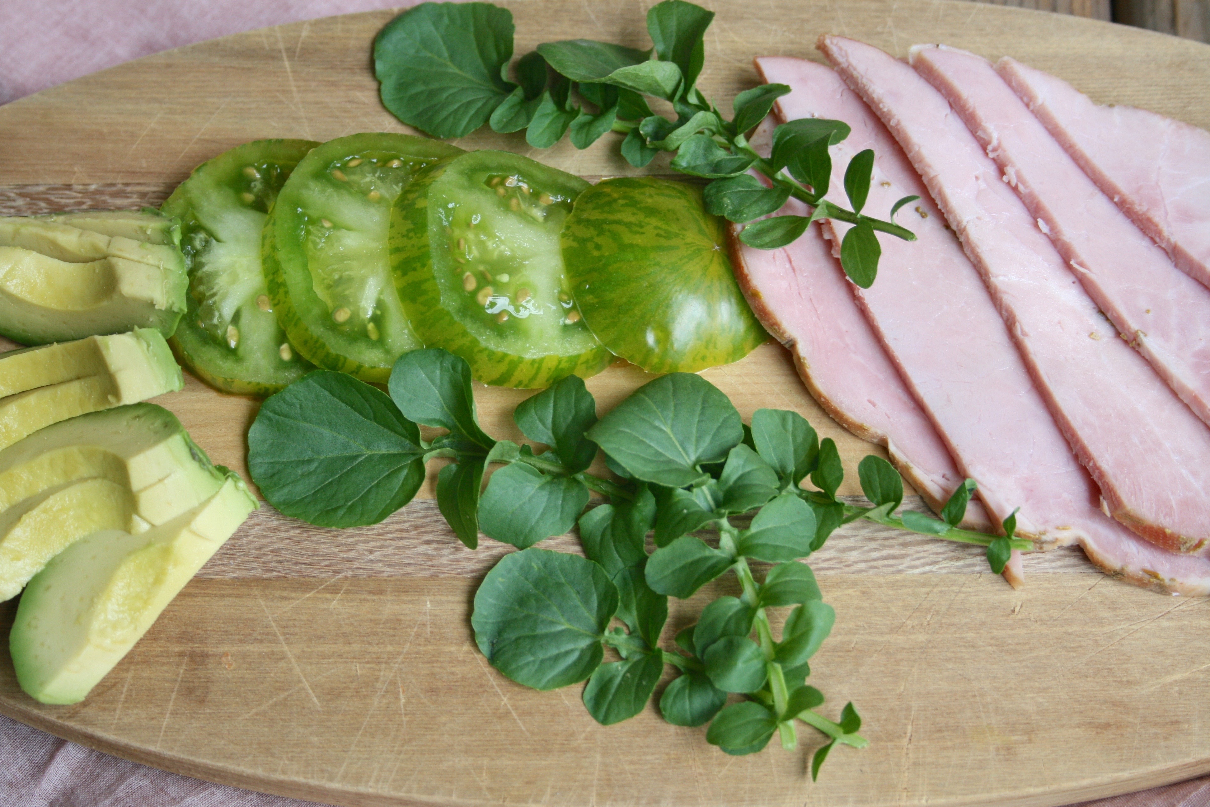I filled this version with green tomato, avocado, rosemary ham and a few sprigs of land cress, a leafy green from the famously healthy and cancer preventing brassica family.