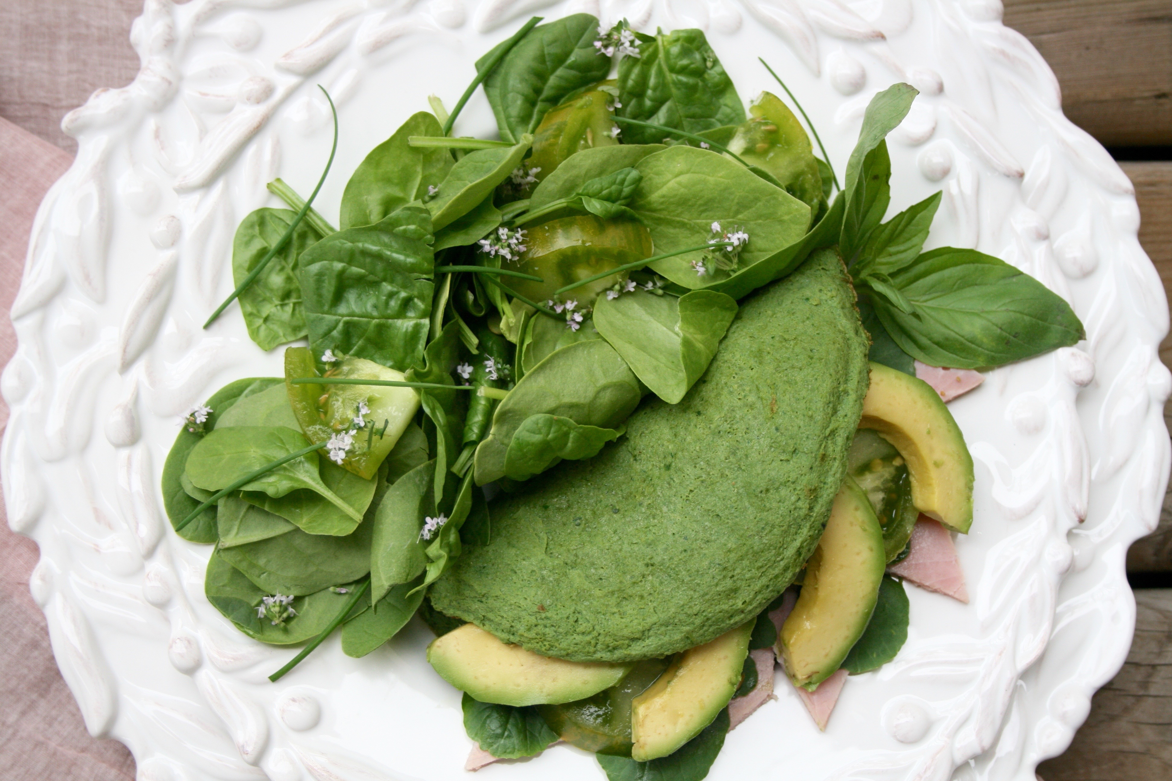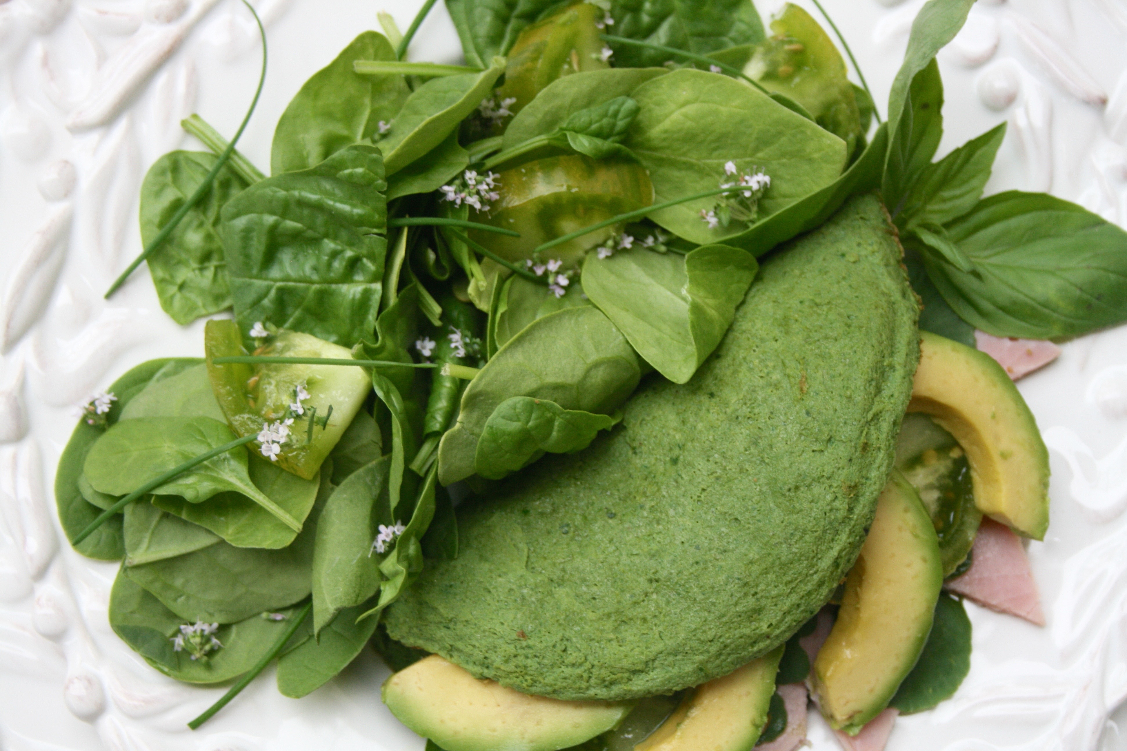 Blending eggs with vibrant green herbs and vegetables like spinach, green onion and basil makes the eggs themselves green, and they remain so even once they are cooked. Besides their hue, the greens also add their nutrients to the dish- a myriad of minerals, vitamins and antioxidants. The eggs can be scrambled, baked into a frittata or folded into an omelette.