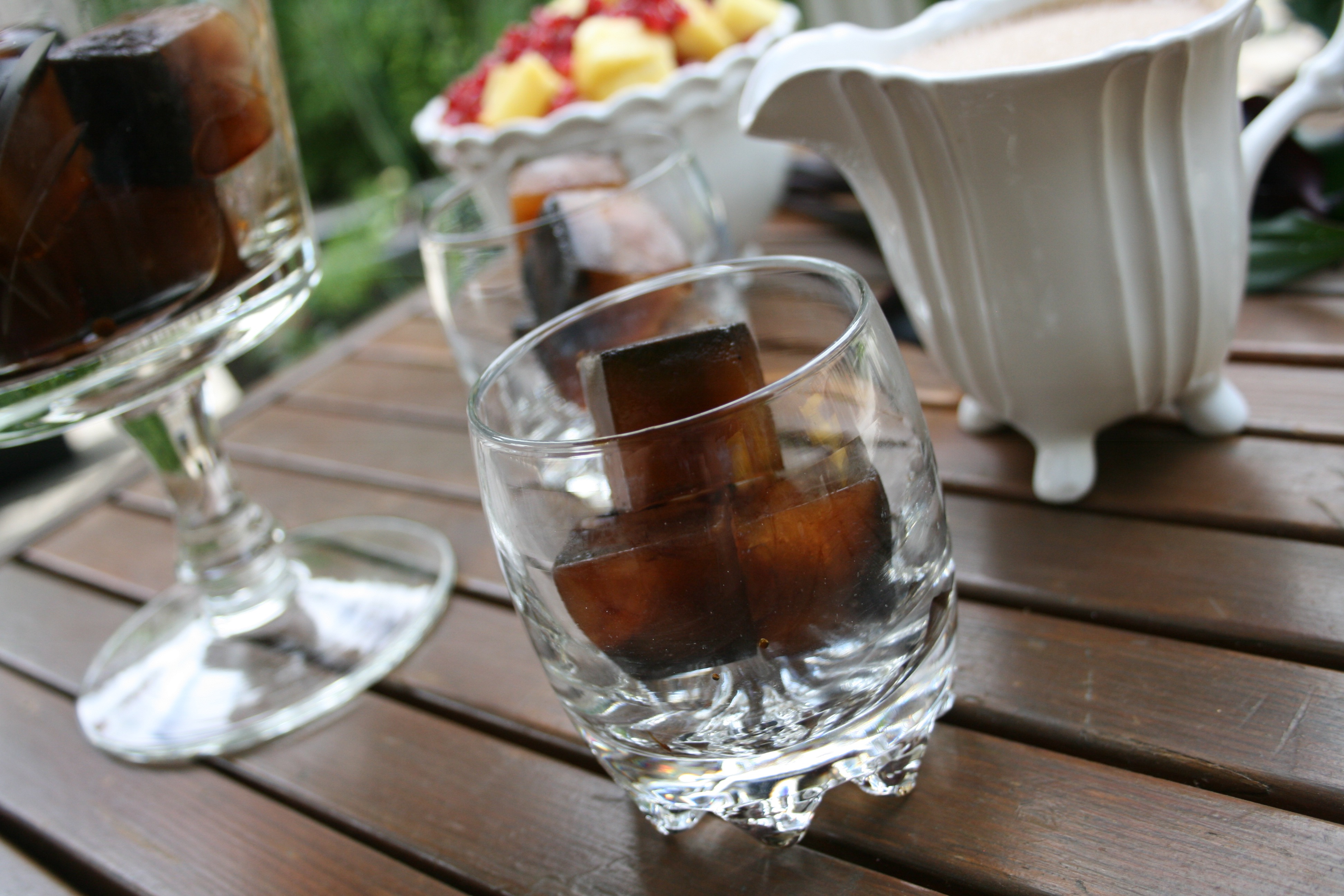 There are few beverages that I enjoy drinking in the morning or early afternoon on a patio more than iced coffee. Usually, a shot or two of espresso is poured over ice then some milk is added to fill up the cup. When I am at home however, I like to do it a little differently and make the coffee into frozen cubes.