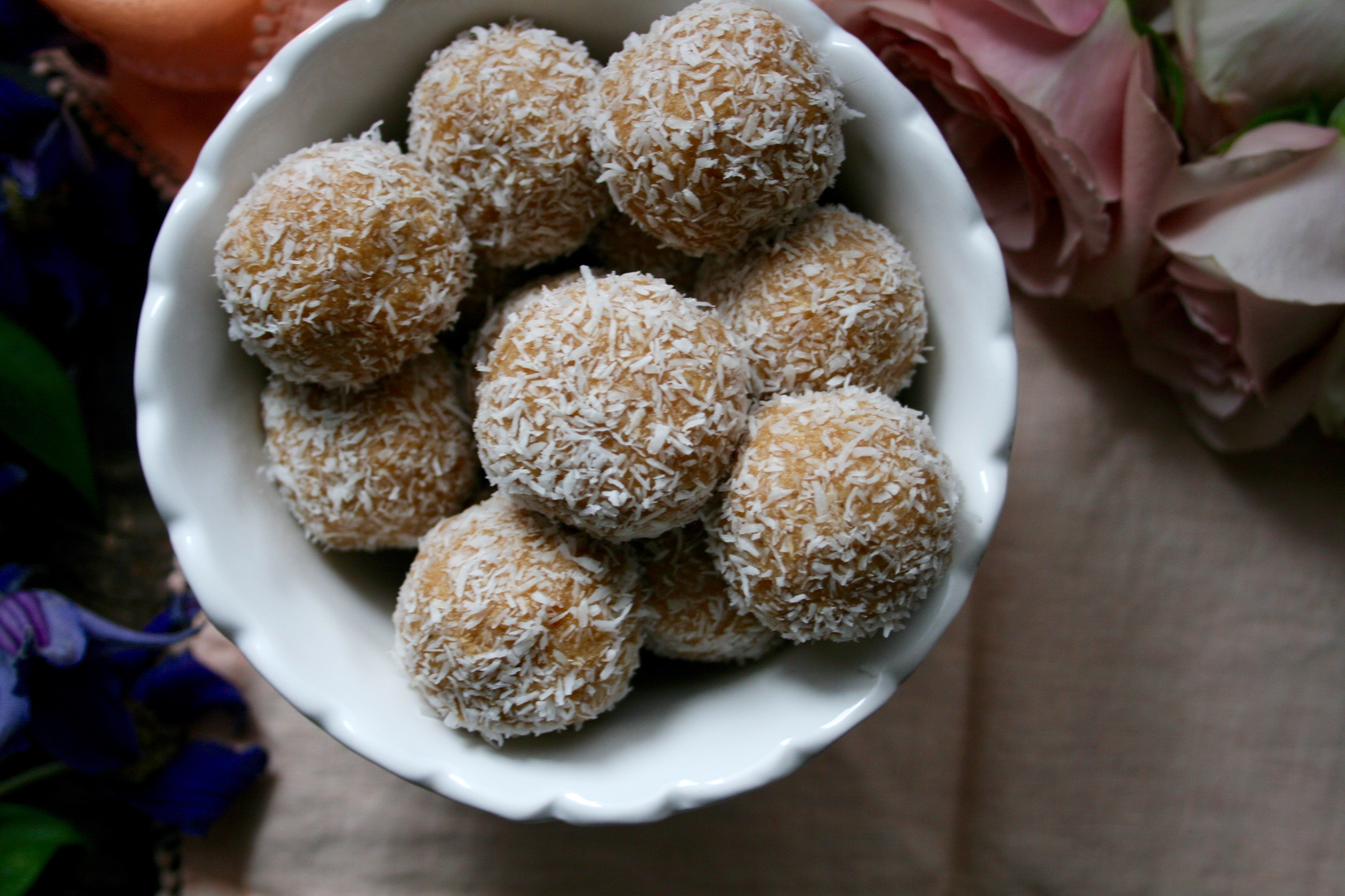 • Optional: more unsweetened, finely shredded coconut to roll the balls in