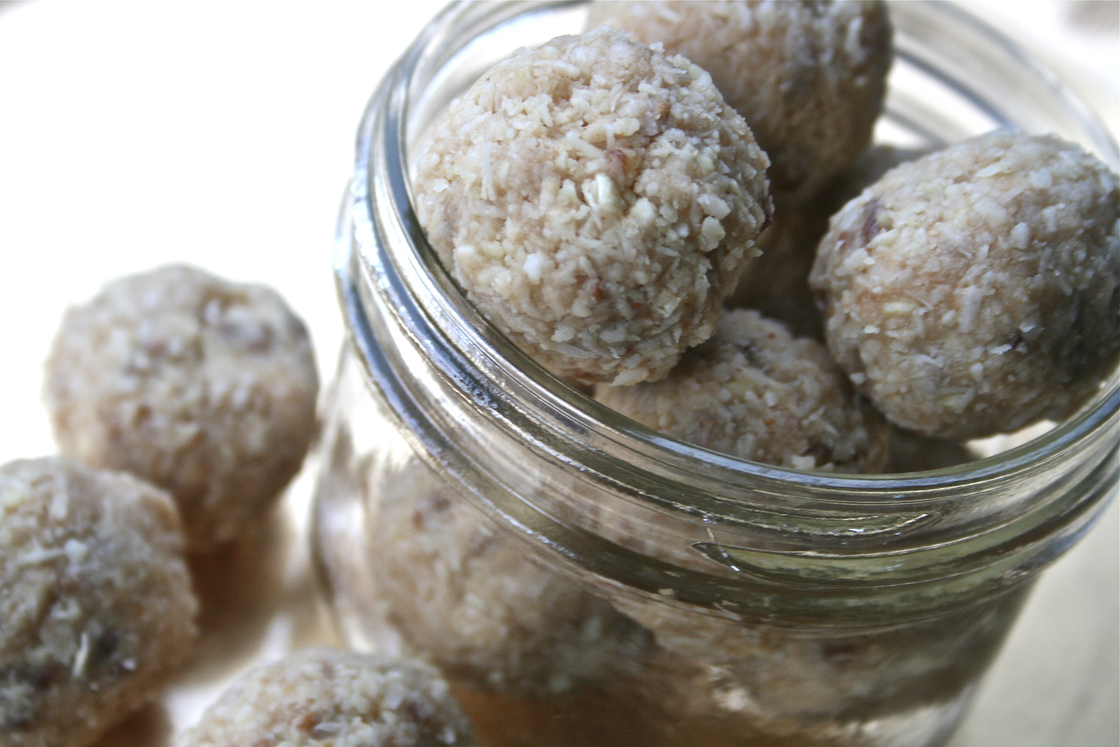 Energy balls are compact sweet treats made from nutrient dense ingredients that are easily portable and provide a good dose of energy. Piña colada, or pineapple and coconut, is a delicious combination that can actually be pretty healthy and makes for slightly sweet and tropical tasting energy balls. Pineapples are great sources of vitamins, minerals and antioxidants but one of their biggest benefits is an enzyme they contain called bromelain, which has anti-inflammatory properties and helps with digestion. These balls use dried pineapple instead of fresh, unfortunately many dried fruits contain added sugars, poor quality oils and sulfur dioxide (a preservative that can be particularly risky for those with sulfite sensitivities), and the tropical fruits can be especially processed so make sure to get good quality options and check the label to see that the dried fruit is the only ingredient. I’ve been using the Level Ground brand recently for most of the dried fruit I get, their products are good quality, Fair Trade, and I think they taste better- an important consideration when there are only a few ingredients; they come in small brown paper bags. The second ingredient to get that piña colada taste is coconut, both the oil and dried flakes. It has a range of vitamins and minerals and the special type of saturated fat it contains is very beneficial, helping to increase HDL (the good one) cholesterol levels. The remaining ingredients are a bit of maple syrup for some added sweetness and cashews for more healthy fats, a delicate buttery taste and texture and even more vitamins, minerals and antioxidants. Raw cashews are best for this type of baking, the oils in raw nuts and seeds are mostly unsaturated so they are more fragile, thus the nuts will stay fresher for longer and the oils have much less chance of going rancid if they are refrigerated.
