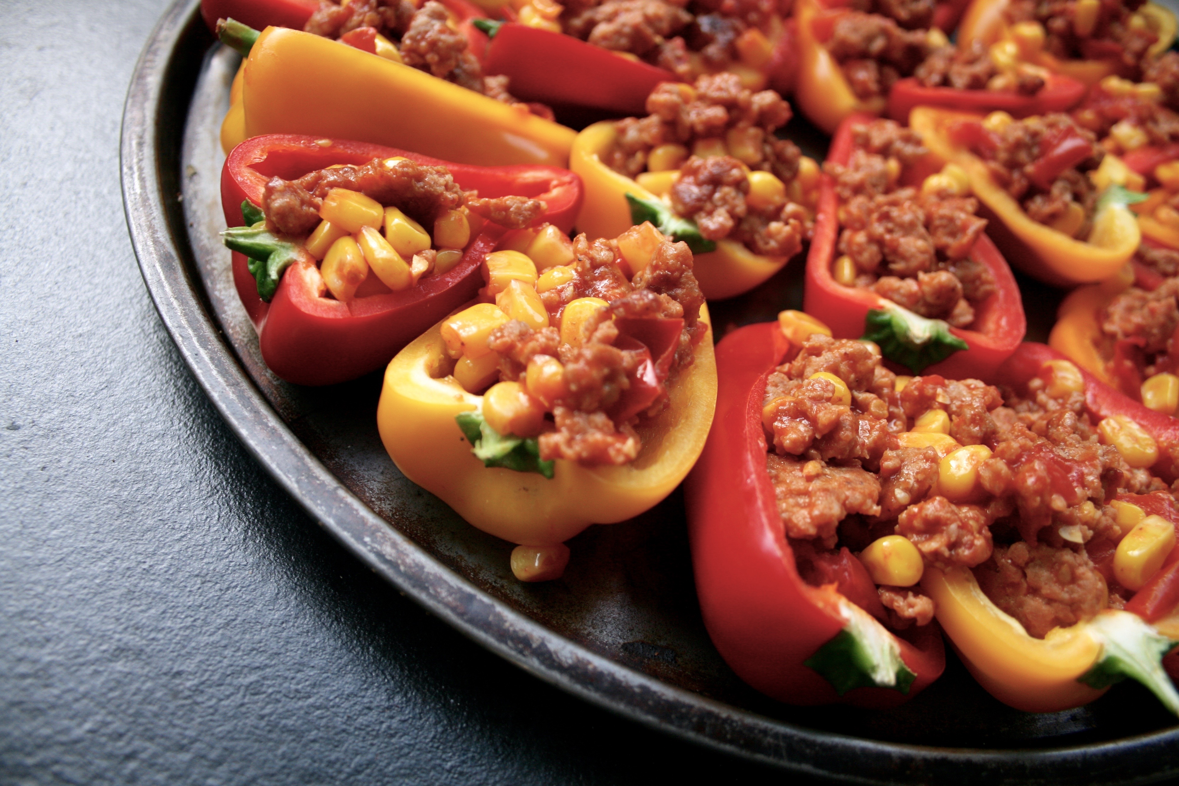 Mini bell peppersChorizo, a smoky and spicy Spanish sausage, comes with a lot of flavour so it does not need any additional seasonings, cutting the ingredient list way down without sacrificing taste. Typically it is made with pork and its distinct flavour comes from smoked paprika. You simply have to cut open the casings, and the flavoured ground meat is ready to be cooked. Some corn adds sweetness and a texture contrast along with fiber, antioxidants, several B vitamins and minerals like iron and magnesium. Tomatoes bring it all together, with a sauce-like effect and contribute their own list of nutrients, including potassium and more vitamin C. Spanish Stuffed PeppersSpanish Stuffed PeppersSpanish Stuffed PeppersTopping the stuffed peppers with sour cream or plain Greek yogurt will help cut the heat if it is too spicy and sliced green onion adds a mild oniony sharpness. A bit of shredded mild cheese melted over top is another traditional option to mellow it out and add some creaminess.Spanish Stuffed Peppers