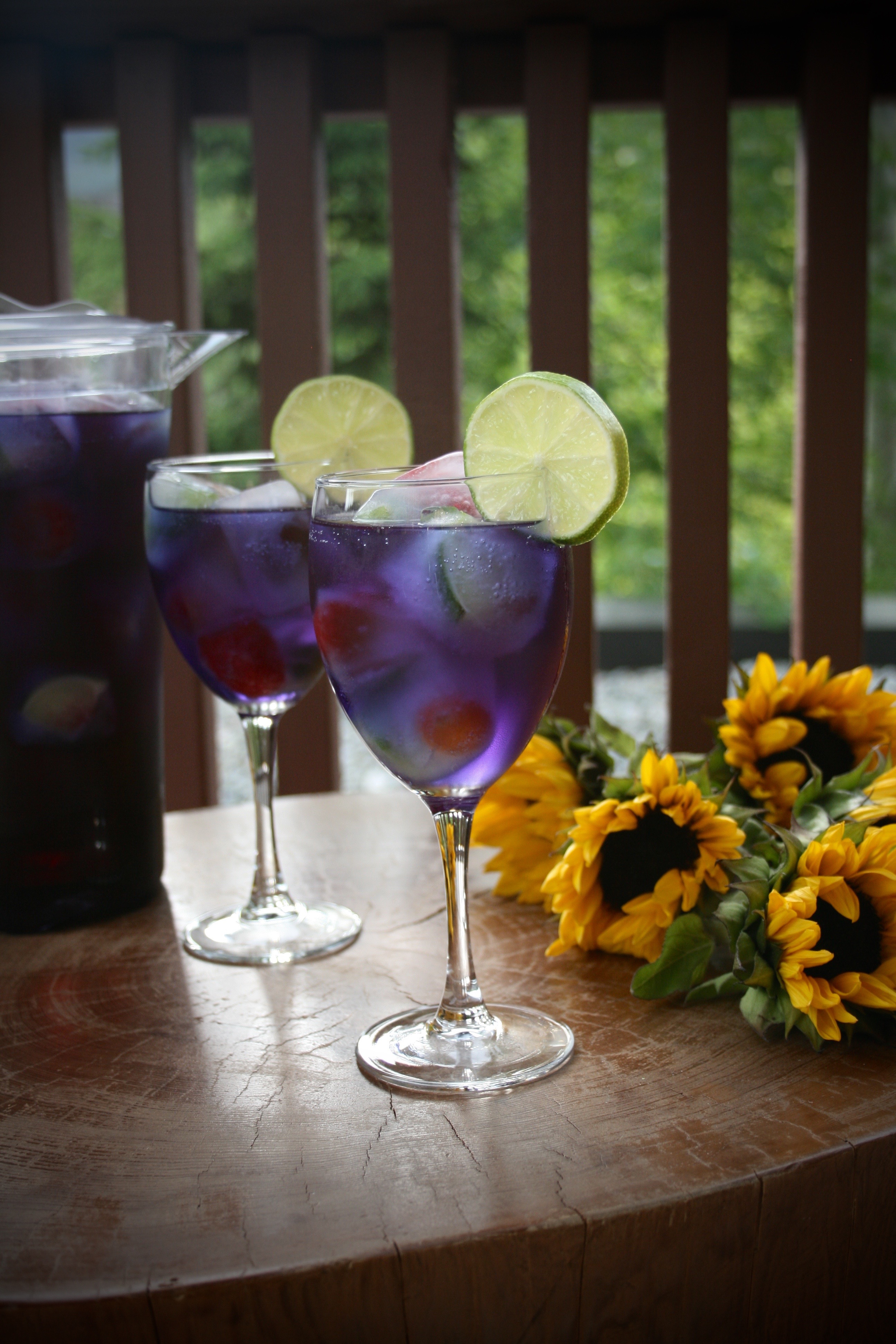 Some blue iced tea and flavoured sparkling water create a light, refreshing and vividly coloured iced tea. Adding in some iced cubes with fruits frozen in add in a rainbow of colour and keep it cool. Staying properly hydrated , especially as the weather heats up, is important for our bodies inside and out and trying out different herbal teas can be a healthy way to mix it up.