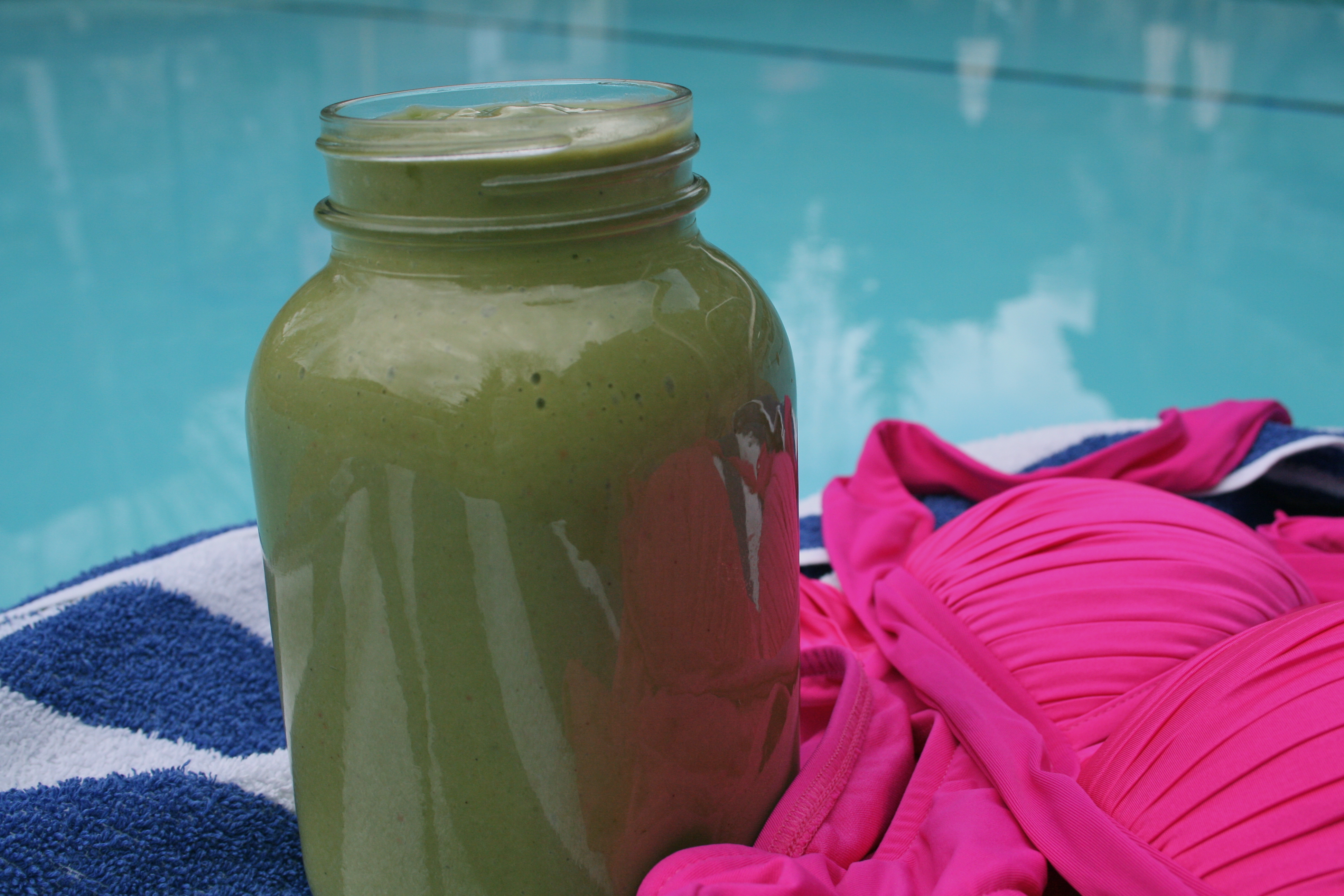 Mango and strawberry is one of those combinations that never disappoints. Add in some lime juice, coconut water, vanilla protein powder and an avocado and it becomes a tropical tasting, rich, sweet and creamy smoothie good enough to satisfy dessert cravings. This is the perfect kind of thing to eat before or to take along when heading to a beach, pool or anywhere else you want to feel energetic, lean and comfortable. Bloating and feeling heavy and lethargic after eating can often be a result of eating food that is hard to digest, has lots of sodium as found in processed foods or that you have an intolerance or allergy to. A smoothie with clean, simple ingredients is easy to digest and it doesn’t have anything that isn’t beneficial like excess sodium and other additives and chemicals. There is lots of fiber, protein and healthy fats to keep you feeling full and the coconut water helps keep you hydrated. For the protein powder, simple is better, it is technically a processed food but there are lots of good companies out there that use only whole foods in the processing of their powder. The best options are plant based or 100 % whey. Personally I like the ones that have a blend of different sprouted grains, seeds and legumes with some super foods thrown in, I find them easy to digest and they taste good (Vega, Garden of Life and Sun Warrior are my current favorite brands). It can be fun and part of the experience to have some cocktails poolside or hit up the fast food stand for some fish and chips at the beach but starting the day well or having some healthy snacks ensures that you won’t get too hungry and tempted by too much of the less healthy stuff around.