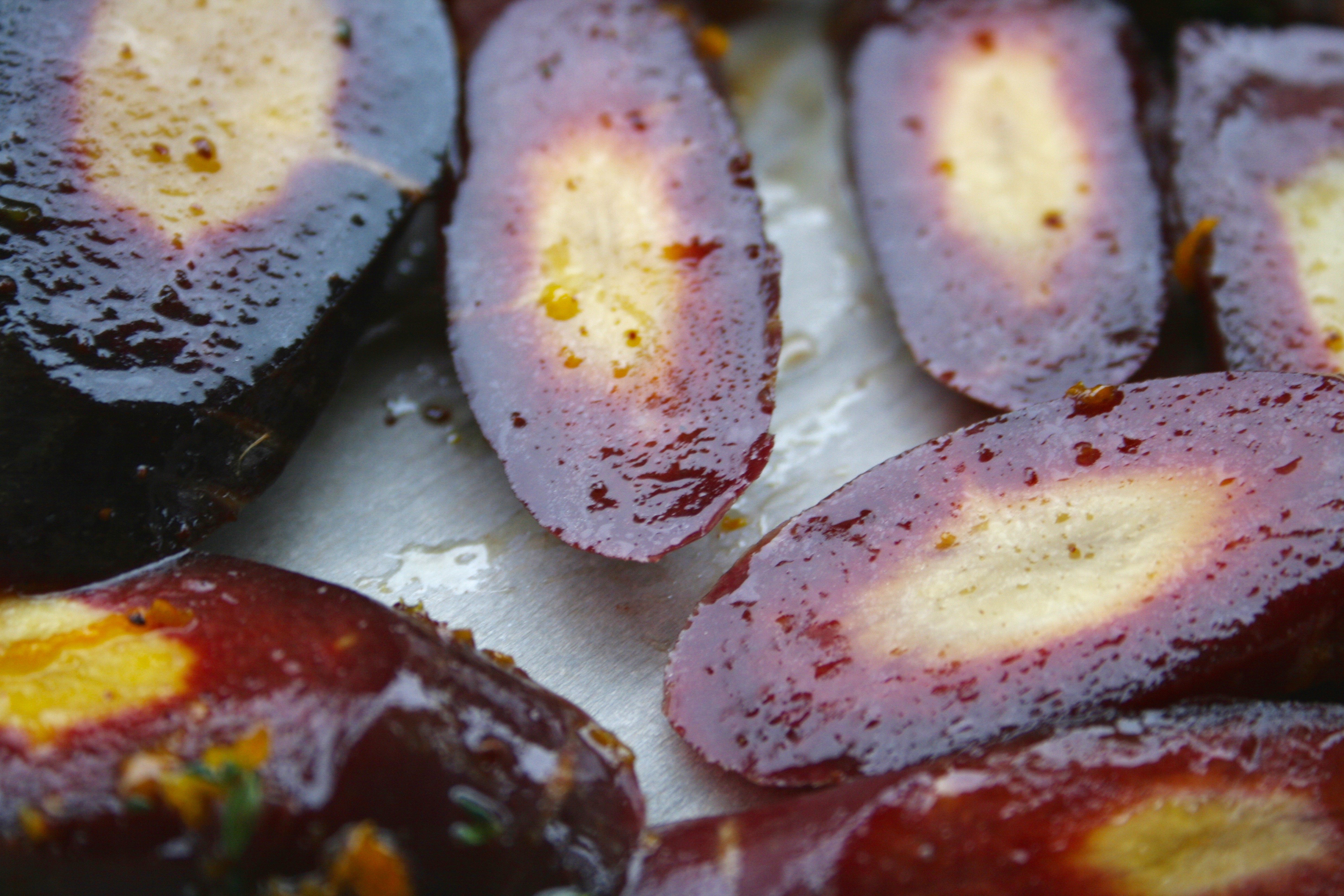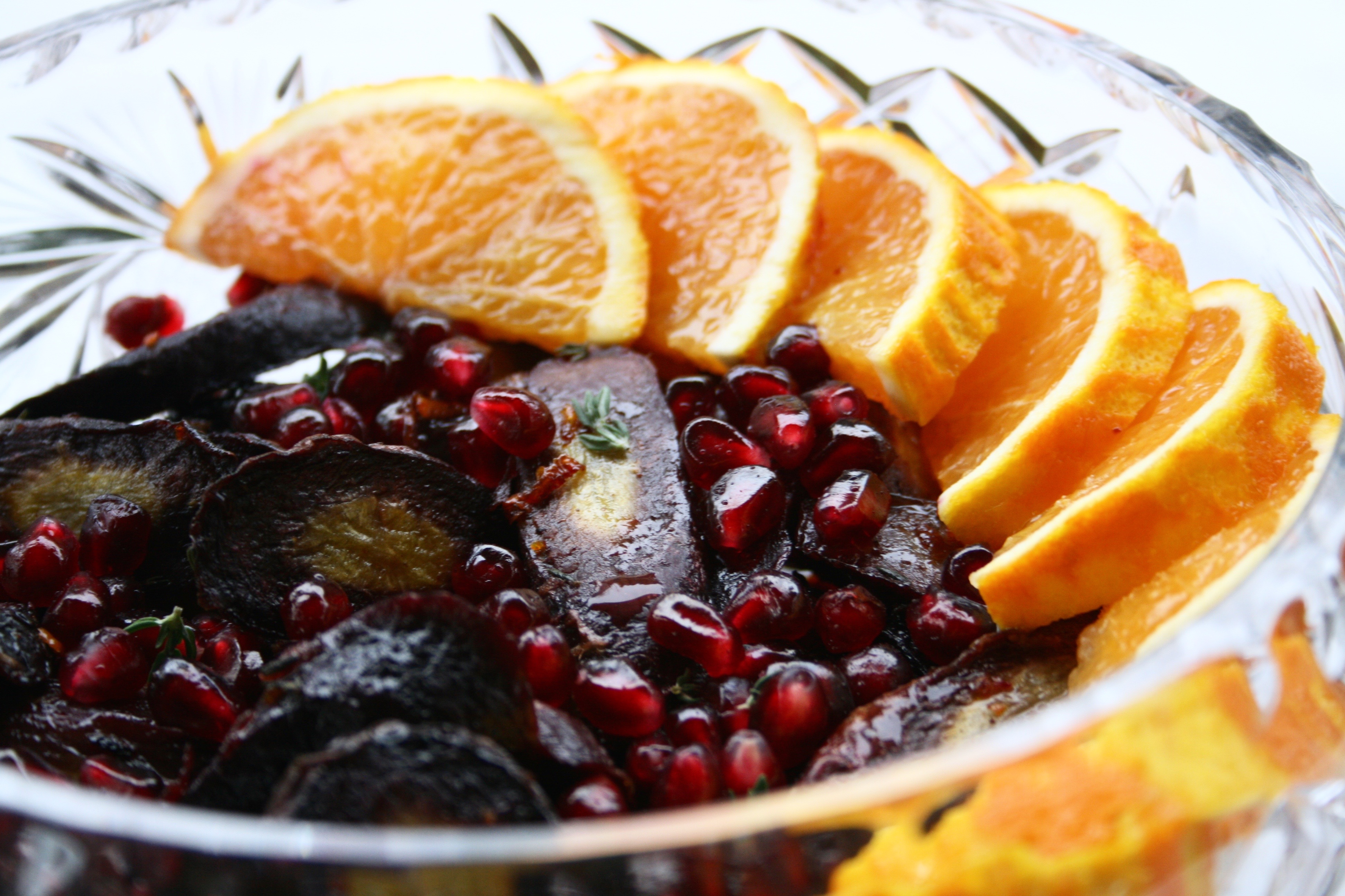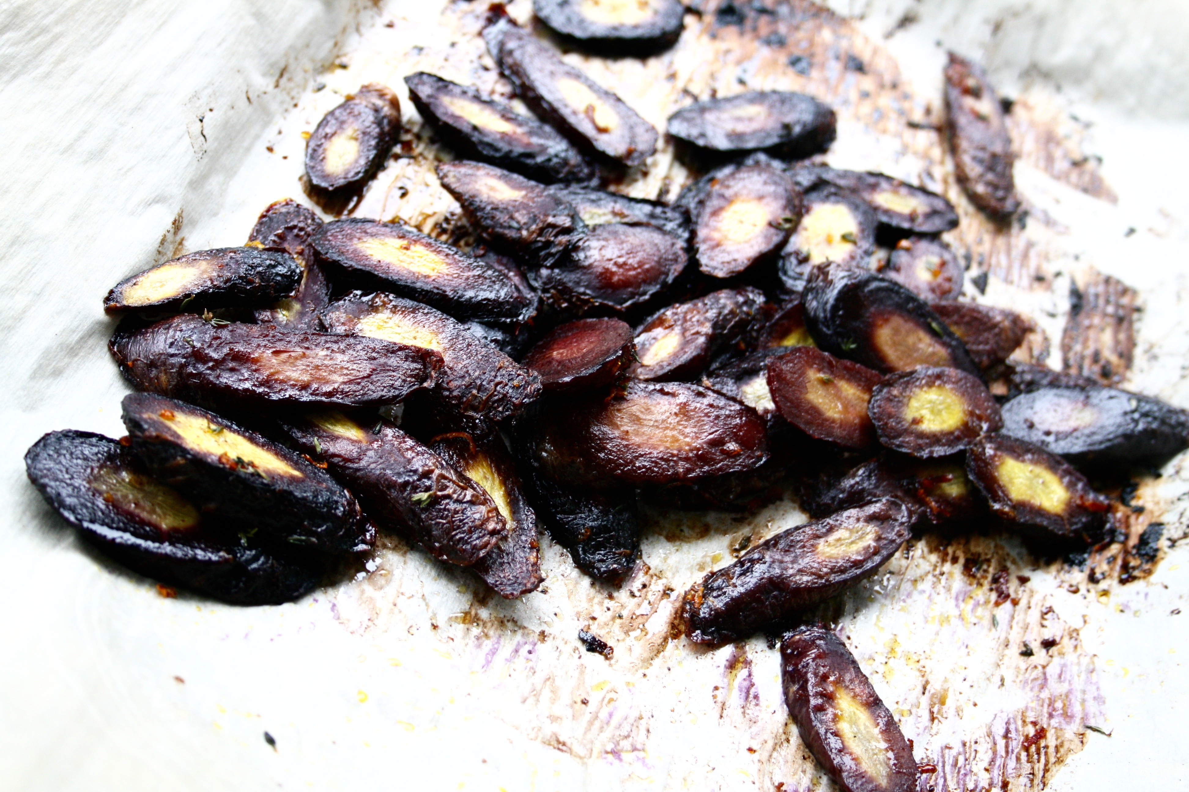 Sumac Thyme Orange Roasted CarrotsCarrots are one of the few vegetables that tend to appeal to picky eaters. Their natural sweetness and soft texture once cooked make them a versatile side dish. The flavour really comes out through roasting and adding in some citrusy and earthy spices gives them a bit more flavour. They’re a mandatory side dish for turkey dinners in my family and for the occasion I added in some pomegranate seeds. I love both cranberry and pomegranate with poultry so I like to incorporate them into the side dishes whenever possible; they also go really well with roasted bacon and balsamic brussels sprouts.Sumac Thyme Orange Roasted Carrots