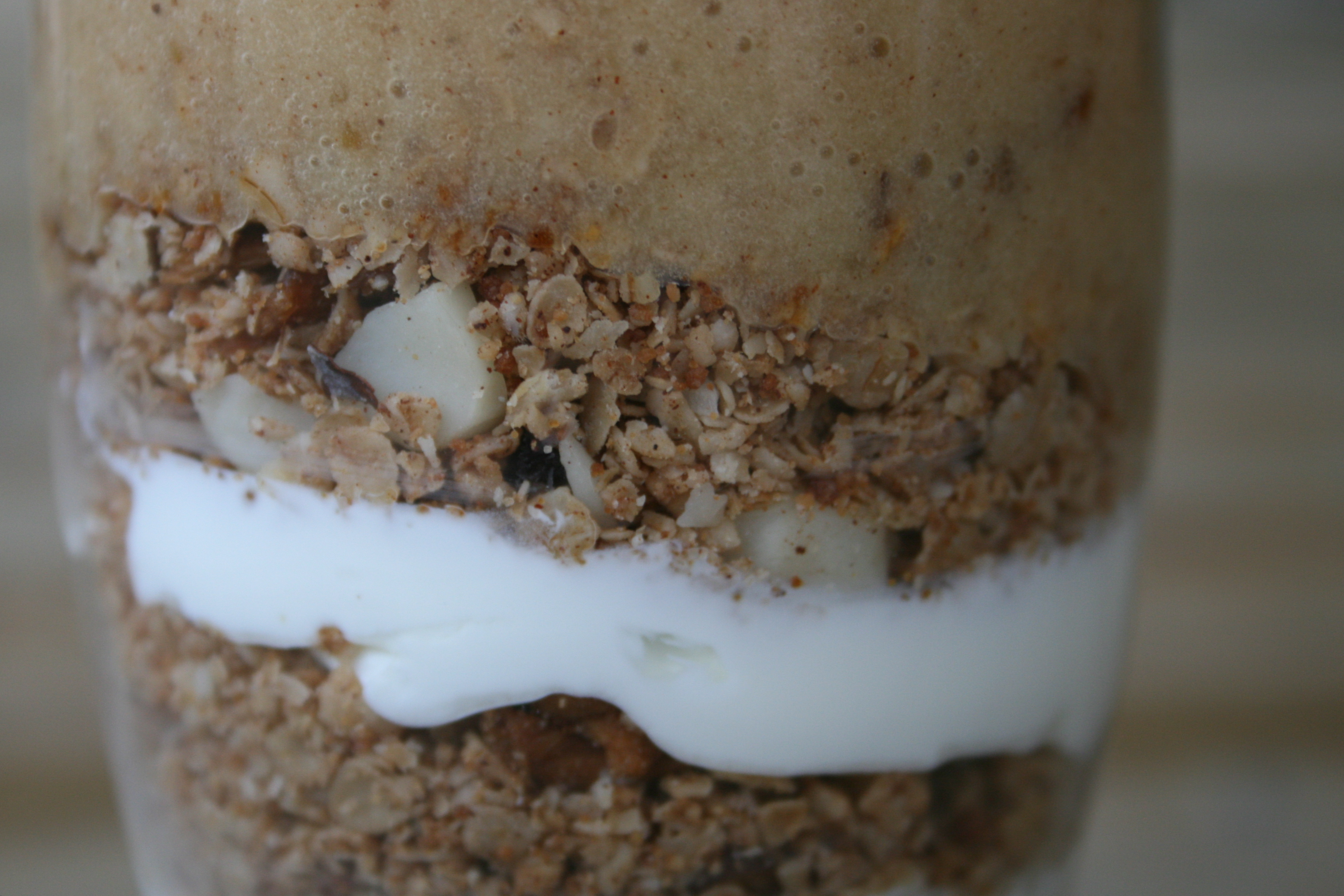 Layering a thick smoothie with granola and yogurt is the ultimate in healthy brunch decadence and it’s good enough to eat for dessert. You can use any smoothie and granola you like, here I kept the flavors tropical for a bit of a pick me up from the dreary winter weather. Smoothies are a really great item to incorporate into a healthy diet because they are flexible to your individual preferences and since the food is completely blended they are less work for your digestive system to break down. To make them more filling I like to add in seeds, nut butters, yogurt and oats, but separating some of the ingredients into different components and layering them can be a good way to mix things up. Be careful with pre-made granola, many versions out there (even the organic artisan ones) so are filled with sugar to the point that they are not much better than cookies. Its best to compare a few labels, the black and white box on the back breaks down all the nutritional info, and go for one of the ones on the lower end of the scale.