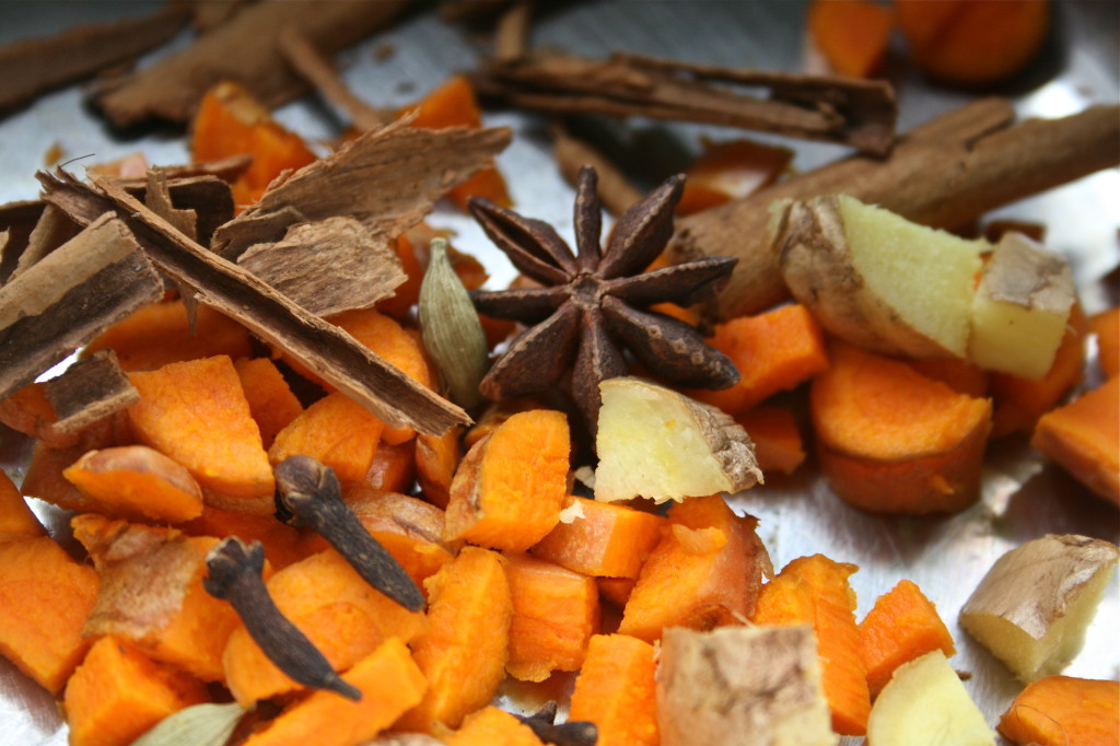 I first heard of this a few weeks ago and it is becoming my favorite warming comfort drink. Our teacher in the yoga teacher-training course I am in makes this for us every afternoon after our hard physical practice to help with our joints. He uses turmeric, ginger and sometimes cayenne, which is really all you need to get the amazing health benefits and a nice taste. In this recipe I added in some other spices that each have their own wide range of healing properties from several vitamins and minerals. I like to stir in a small spoonful of raw or manuka honey once it is cooked, strained and in my cup for its microbial (germ killing) properties, nutrients and sweetness, but grade 2 maple syrup or palm sugar works well too for vegans.